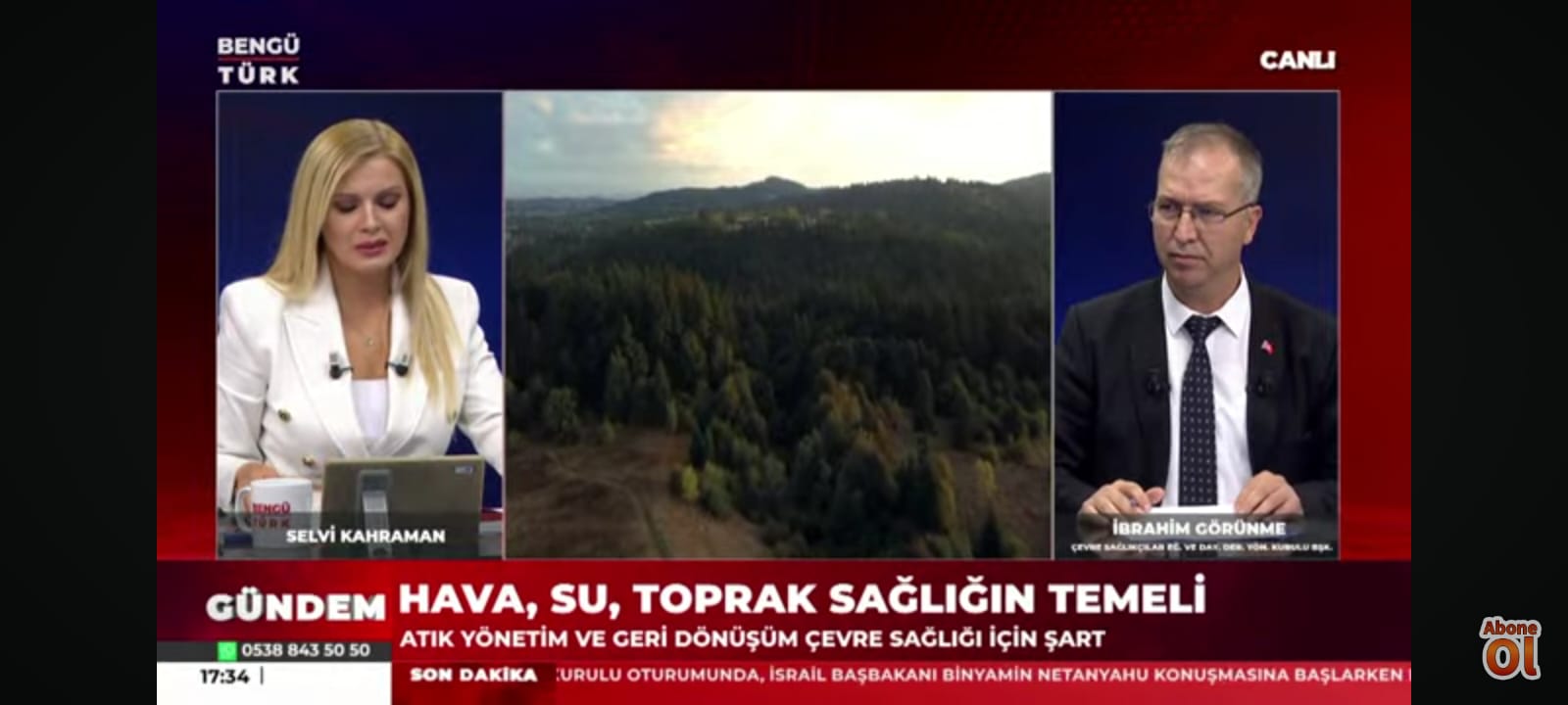 Akşam saatlerinde ise Derneğimizi temsilen Genel Başkan İbrahim GÖRÜNME Bengütürk Tv de Selvi KAHRAMAN tarafından sunulan haber Bülteni Canlı Yayınına Konuk oldu. Programda Çevre Sağlığı Mesleği ve 26 Eylül Dünya Çevre Sağlığı Gününün önemi üzerinde duruldu. Programı izlemek isteyenler https://youtu.be/CS1vW7wF64E linkinden izleyebilirler.